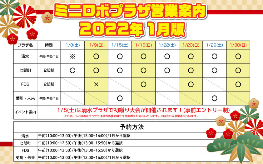 『ミニロボプラザ臨時運営について』 ~2022年 1月版~