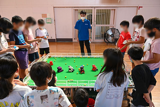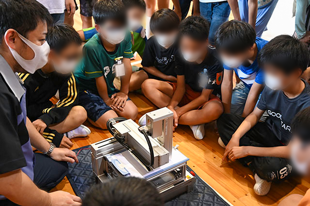 ★まずはじめに、アイエイアイが行っている社会貢献活動のひとつ「ミニロボ操作体験」からご紹介です(*^^*)