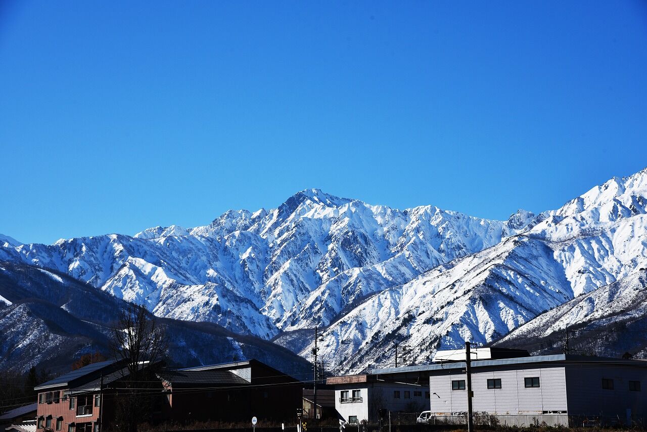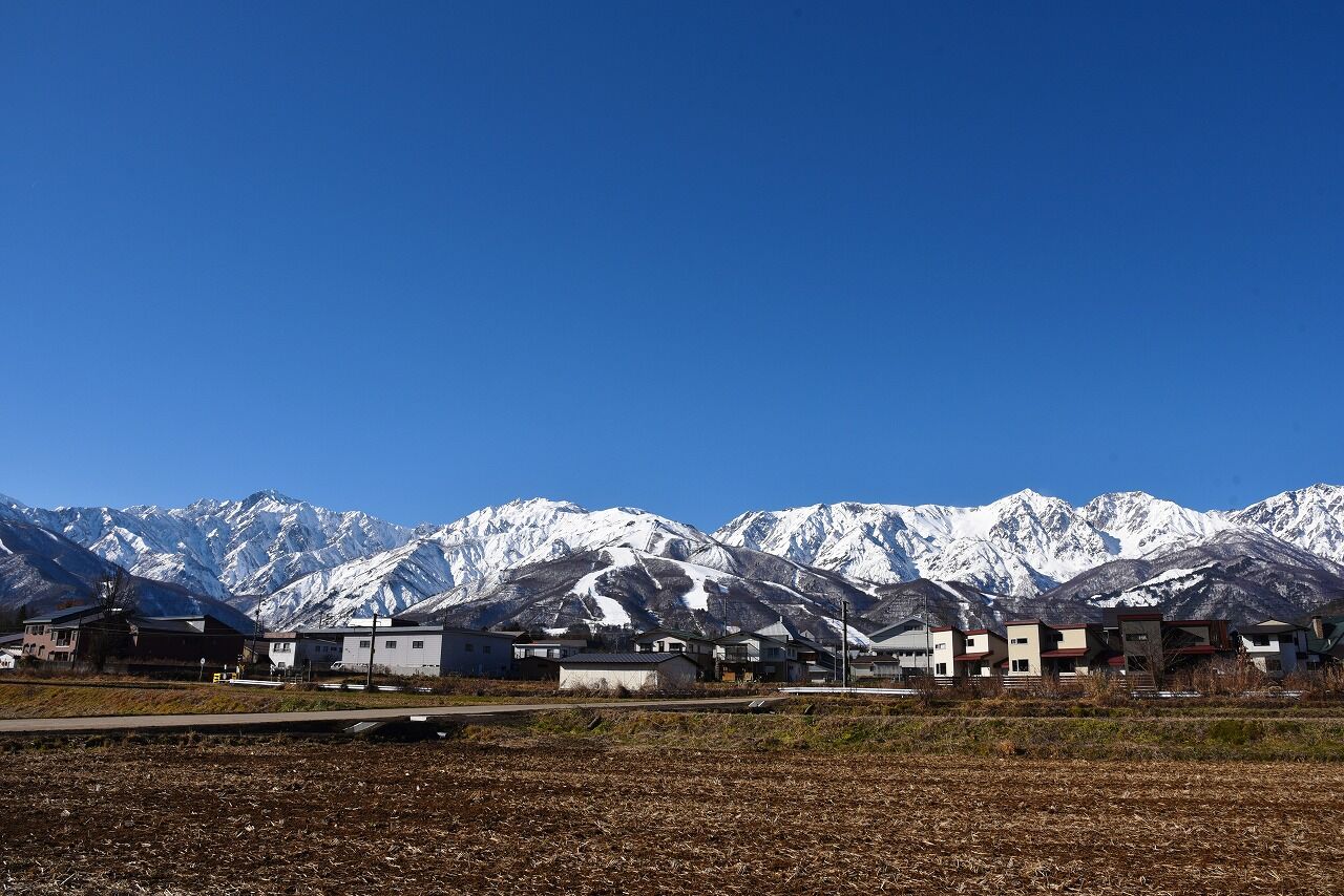 大町市までは山も雪が少なく、白馬まで行ってやっと平地にも雪が積もっているといった感じでした。