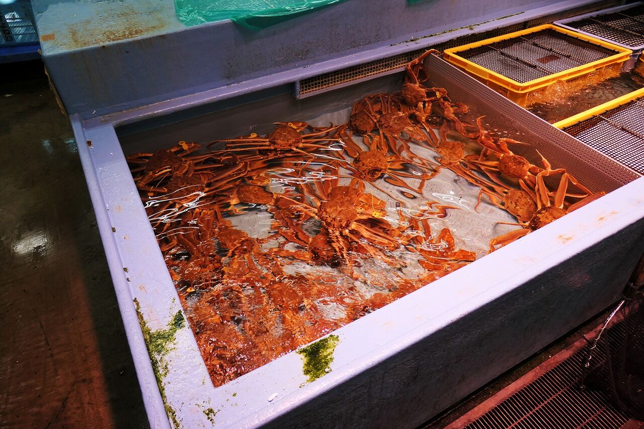 この写真だと分かりませんが、さかなセンターの中は約7割がカニ屋さんでした。