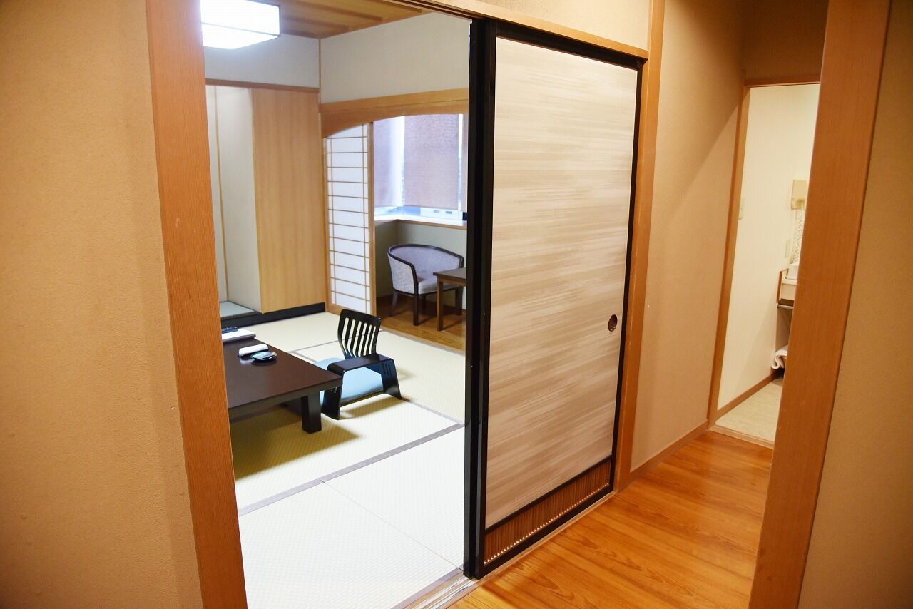 部屋の入口もビジネスホテルと違って凝った作りです!流石有名な温泉街!