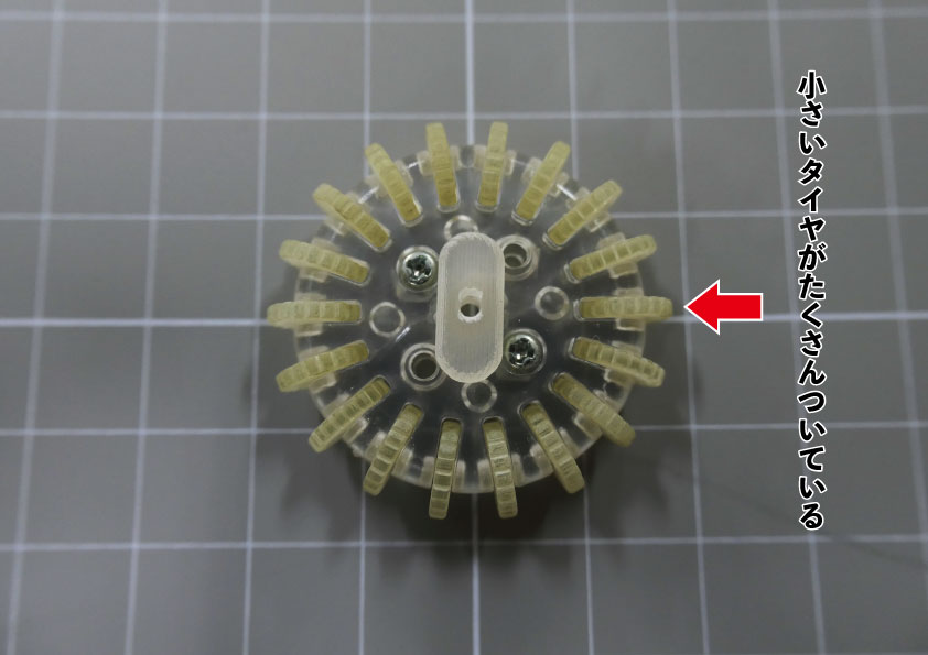 オムニホイールには横方向に回る小さいタイヤがたくさんついているので滑ってドリフトすることができました。