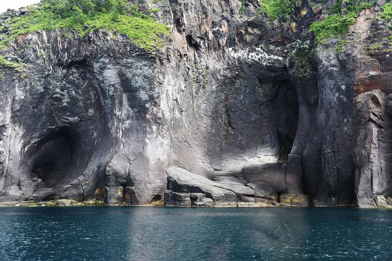 崖が変なふうに削れていますが、これは流氷や波で削られてこのような形になったそうです。