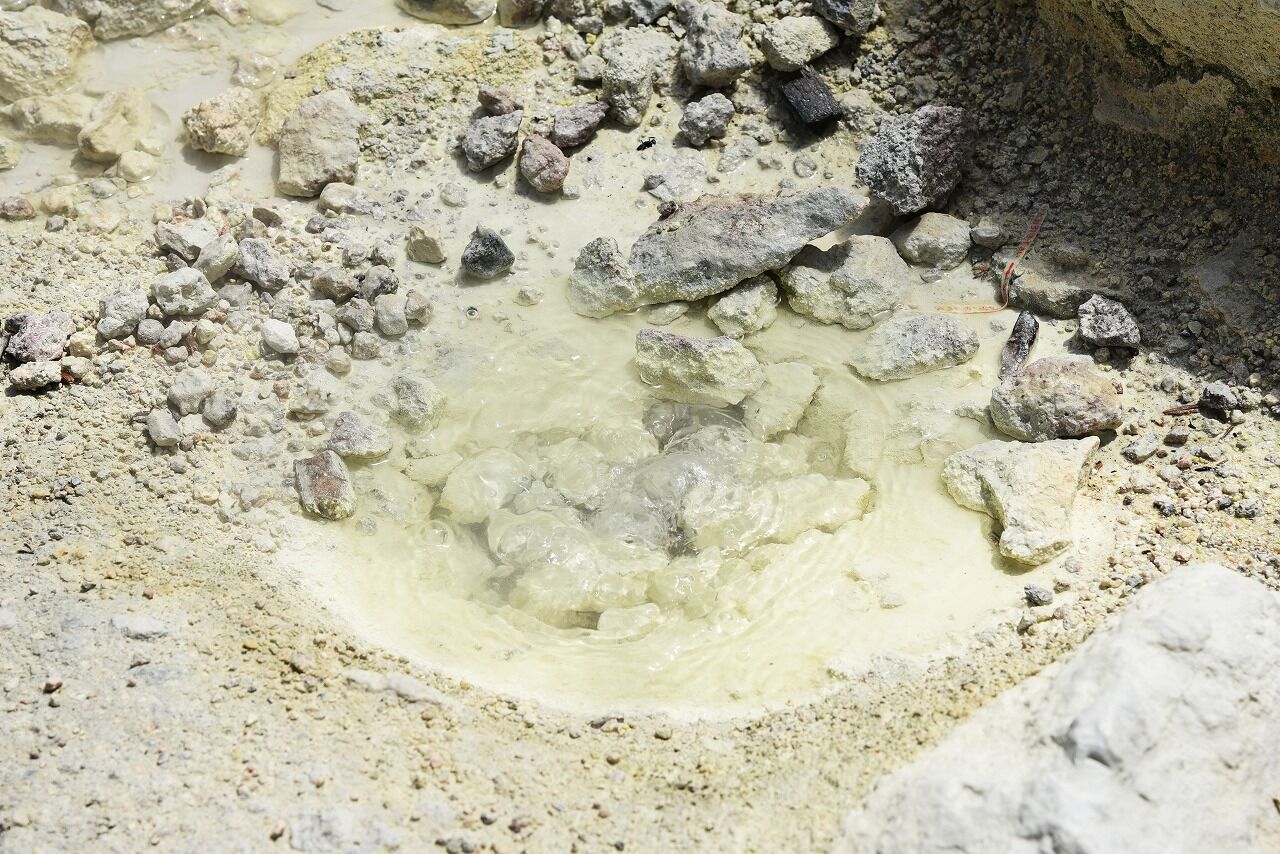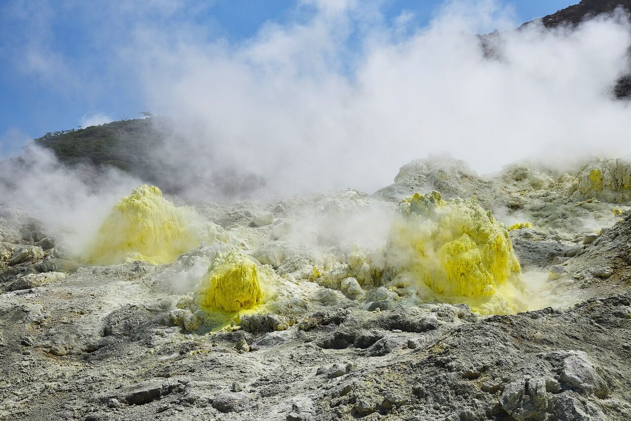 活火山で、噴気孔から火山ガスが噴き出しています!