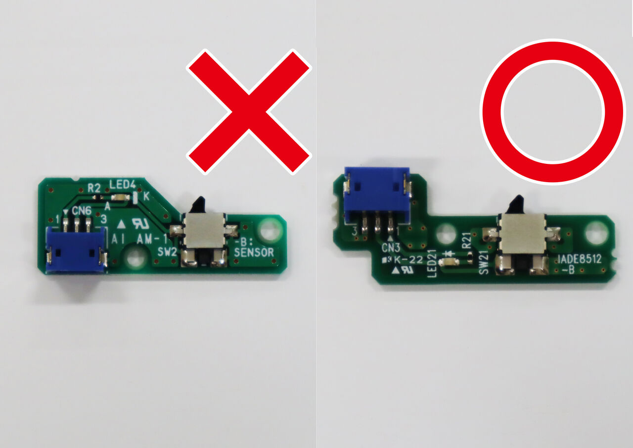 説明書20ページで使用する『センサー基板』(ピンクの袋に入っています)が写真左の物となってしまっています。