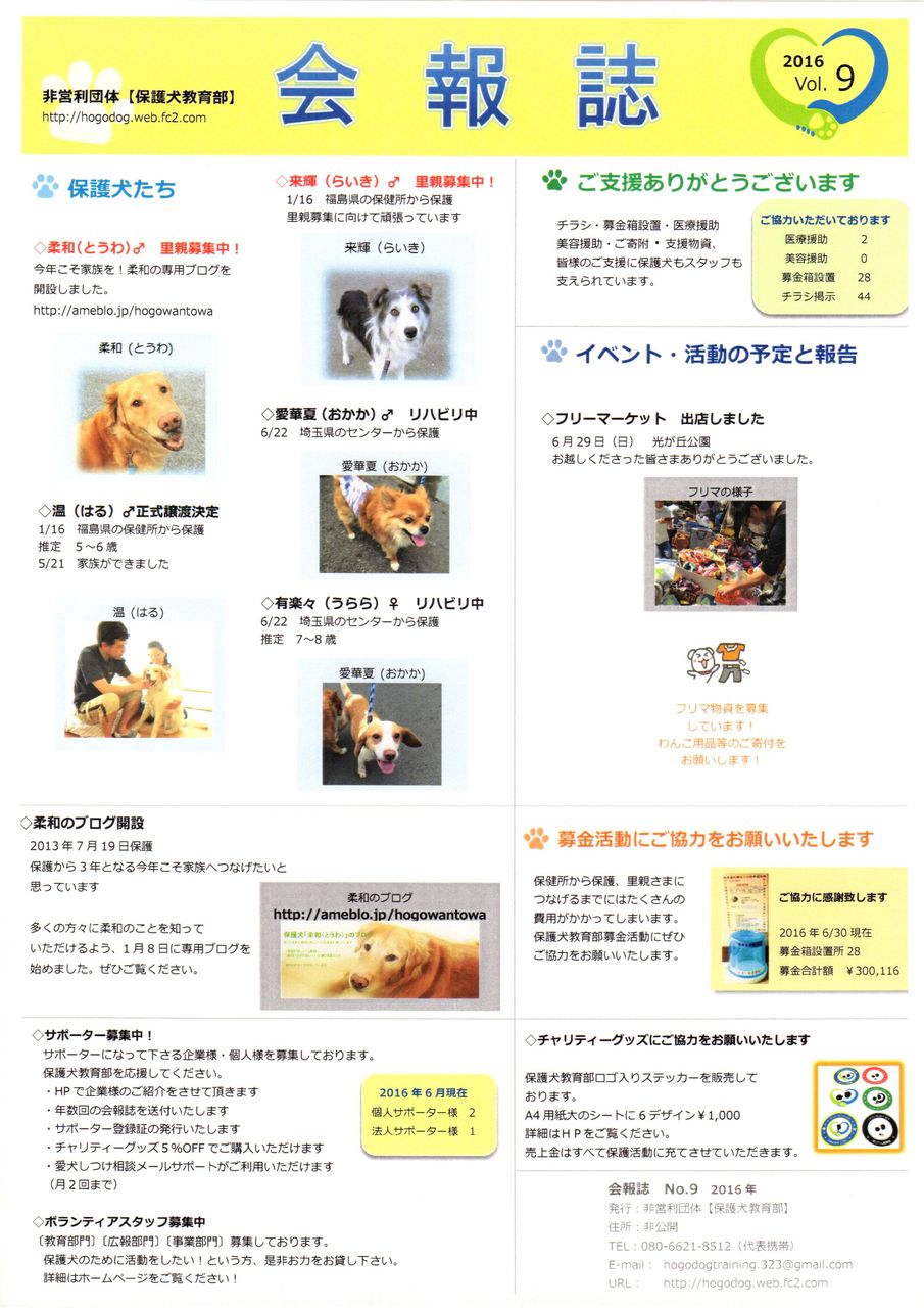 保護犬教育部の会報が届きましたので、おしらせいたします。