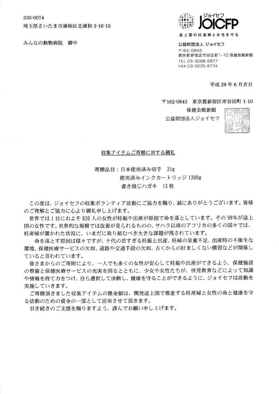 古切手・使用済みインクカートリッジ4月発送分のお礼