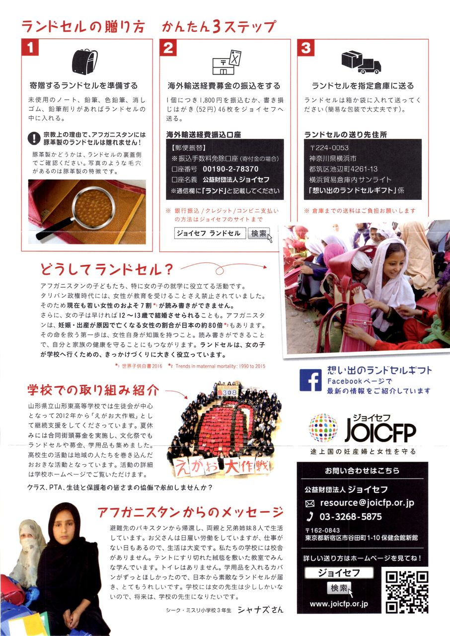 先日ジョイセフへお送りいたしました。