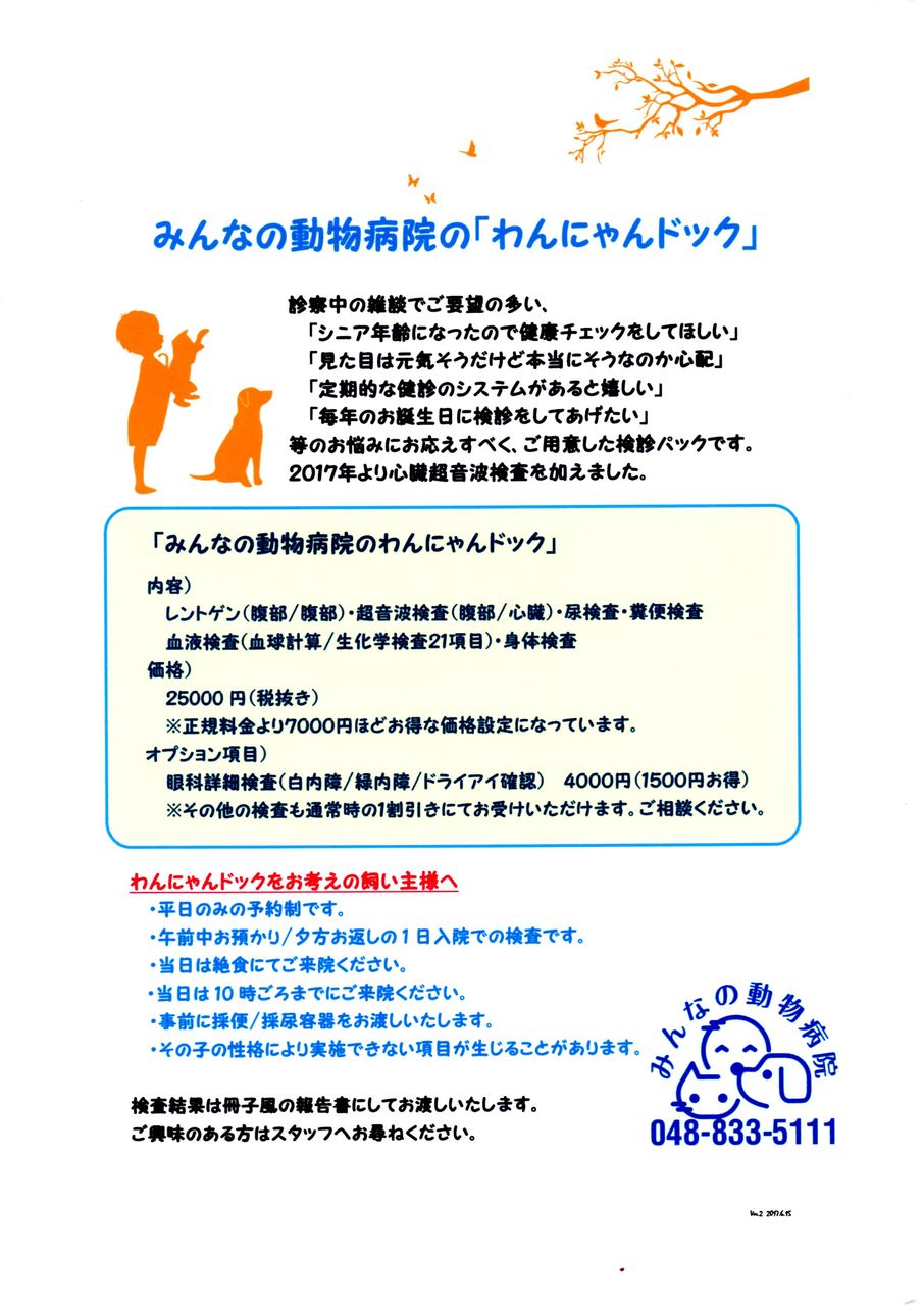 昨年、ご好評をいただきましたフィラリア採血と同時にできる検診パック、