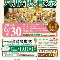 人形供養祭のご案内 2019年05月07日 17:01 年に一度の 『人形供養祭』 を開催いたします。■日時: 6月30日 ■受付 8:30~11:00 ■法要 11:30~■会場: みのり会館 三好中央斎場■供養料: みのり会員 1,000円 / 一般 2,000円 ※一世帯につきどれだけでも可能です ...
