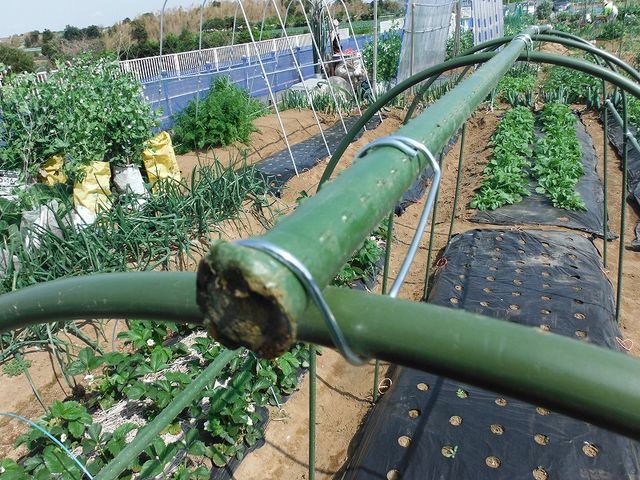 これでトマト支柱にビニールを張れば準備は終了だ。