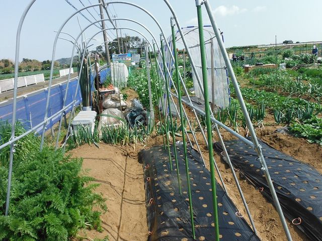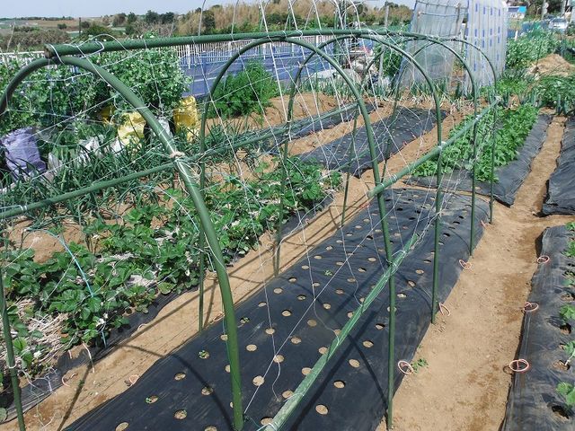 蔓もの畝にネット張り