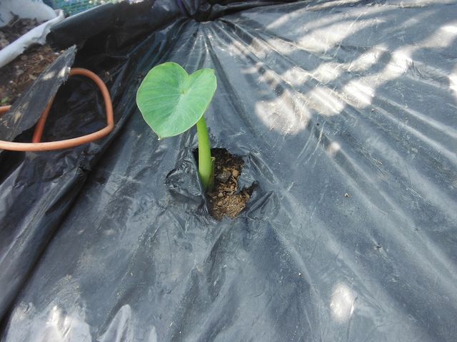 コンニャク芋から突然枝や葉みたいなものが出てきていた。