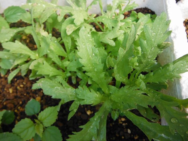 ホウレン草と春菊が少し大きくなってきているがいずれも