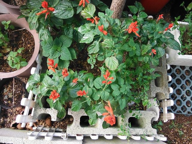 土をそのまま使っているためか草やサルビアが一緒に生えている