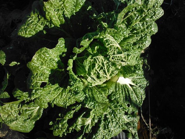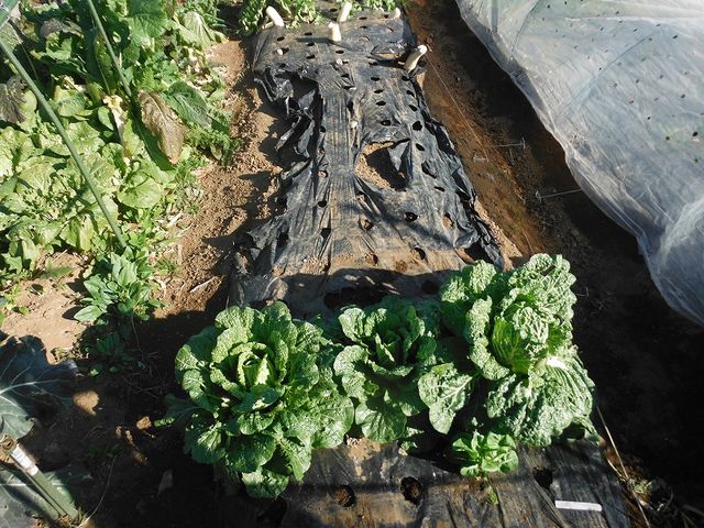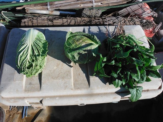 手前のミニ白菜も一つだけ収穫し、後の二本は撤収予定。