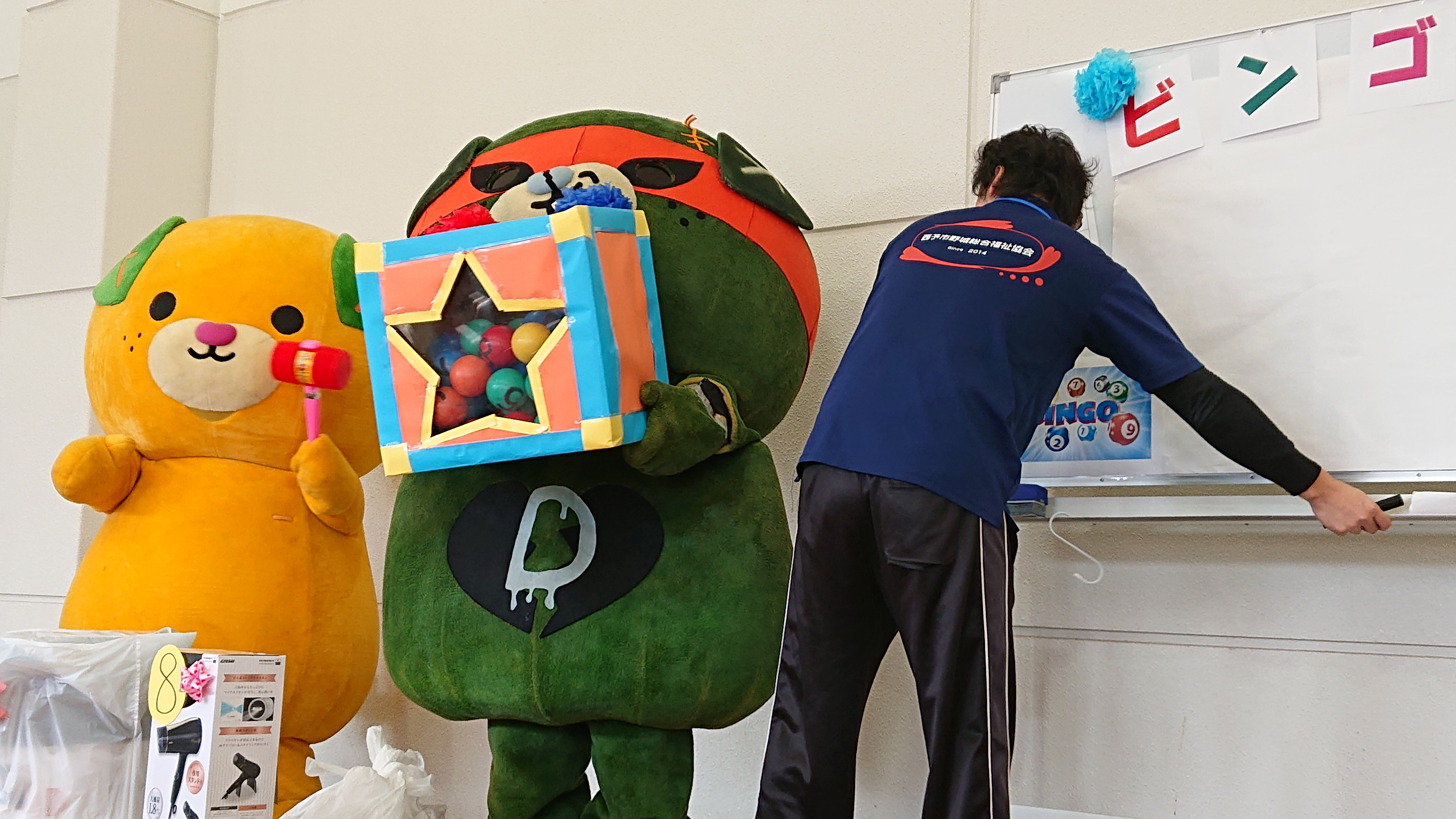 みきゃんやダークみきゃんにビンゴのお手伝いをしてもらい