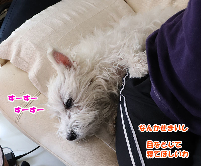 リアルみくちゃんは、豪快にばんごはんを食べた後、わたくしの背後に丸太のようにころがっています。