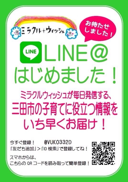 LINE、LINE@から"@VUK0332D"をID(@マーク含む)で検索して友だちに追加してください。