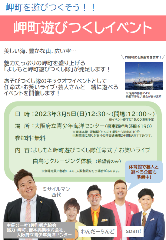 魅力たっぷりの岬町を盛上げる「よしもと岬町遊びつくし隊」が発足します!