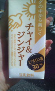 今日の朝、仕事行く途中にコンビニよったら見つけちゃいました\(*^▽^*)/チャイandジンジャー味♪豆乳大好きで毎日いろんな味を飲んでるりなとしては思わず購入〜☆甘さの中にぴりっとジンジャーが効いてて結構おいしかったょ(´ω`)今度はピーチ&食物繊維ってゆぅのを試してみようと思いマス('-'*)エヘ★りな★