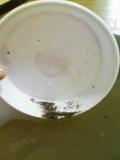 3.パン皿を45度に傾け、同じ方向にまわし、砂を捨てていく。