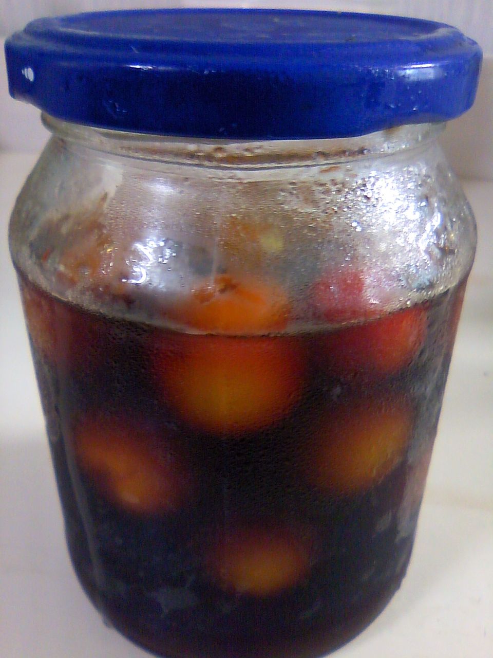 ベランダで作ったプチトマトも黒酢に漬けてみましたの酢、