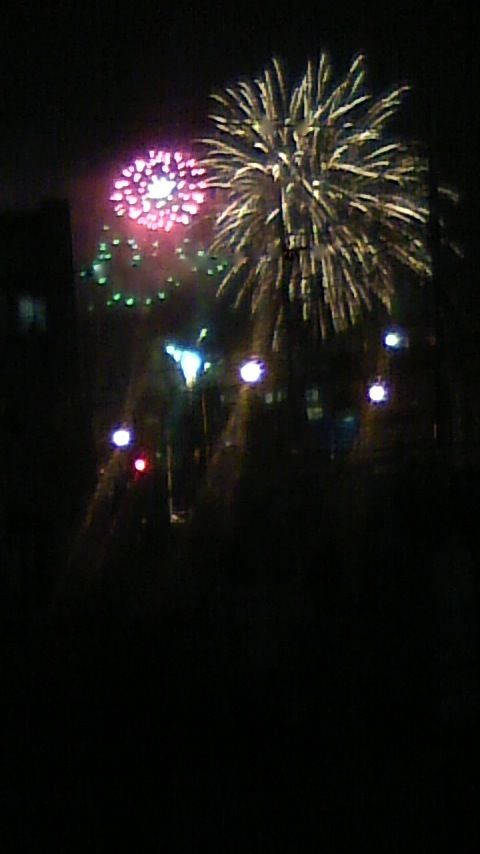 ふと目を降ろせば、うちの前の歩道にゃ、デッキチェアを出して花火を眺めるご近所さんやら、地べたに寝そべって夜空を仰いでいる若者やら…