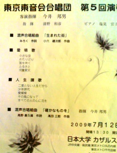 東京東音会合唱団の定演で、混声合唱組曲「生まれた街」(詞:みろく 曲:小六禮次郎はん)を歌ってくださるとゆ〜ので、ご招待いただきました。