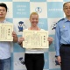 右から真野署長、サビオ・アレッサンドラさん、ワン・テンペイさん