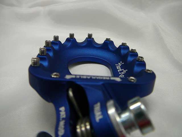 7075アルミ薄型ナベ形状で打ちにくく足裏を包み込む形状!前後に最大5mmオフセット可能ポジ