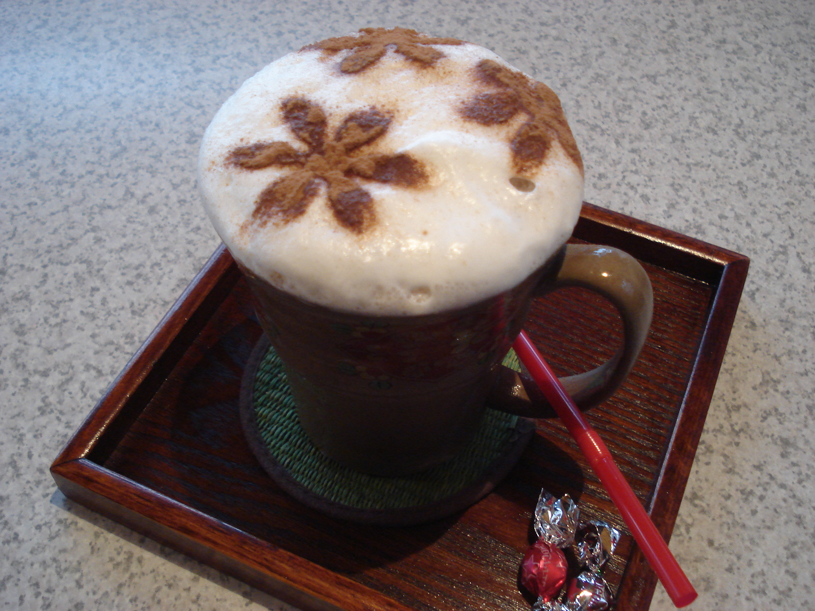 完成したので第一号のテラス席のお客様として、景色を眺めながらアイスココアを