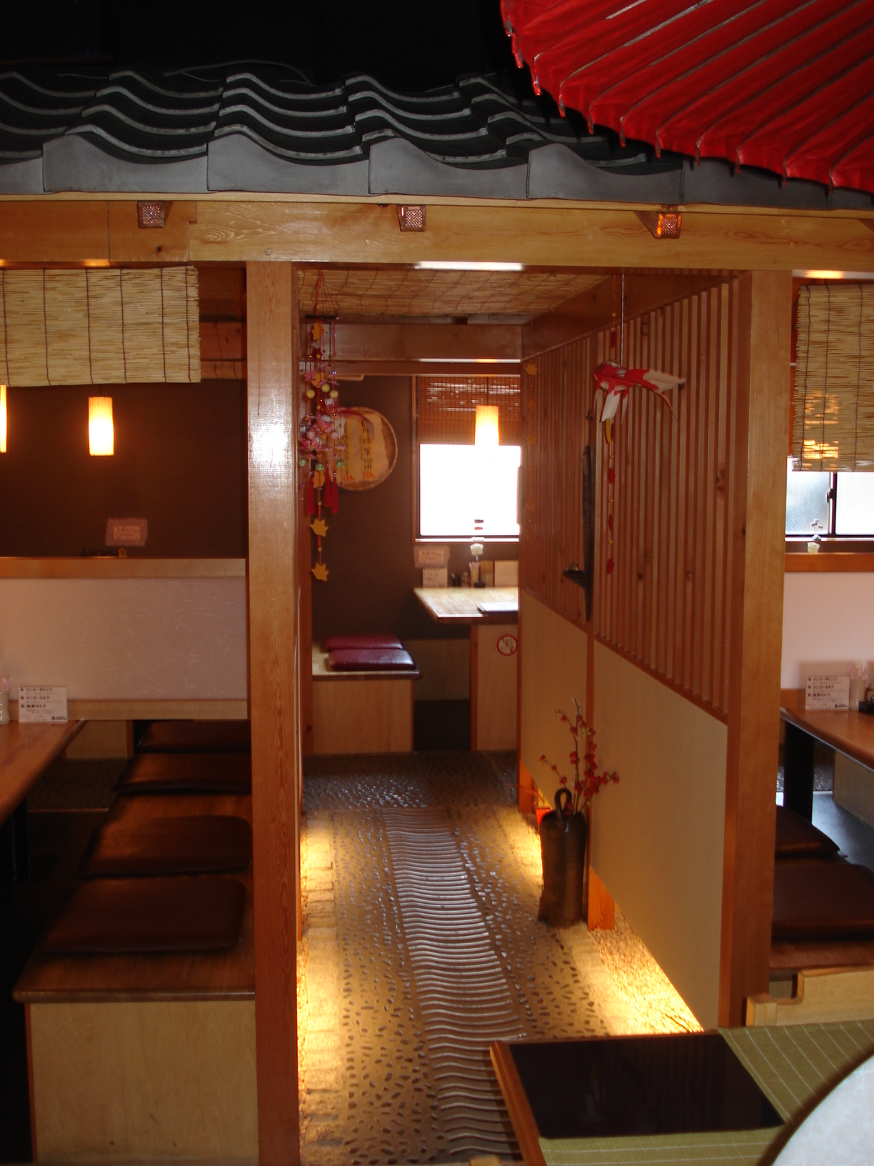 お店の雰囲気は、和風で区切りをつけた座席で落ち着ける店内です
