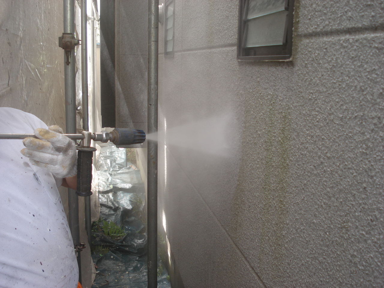 そちらは足場を掛けた同じ日に夕方から洗浄が始まり、
