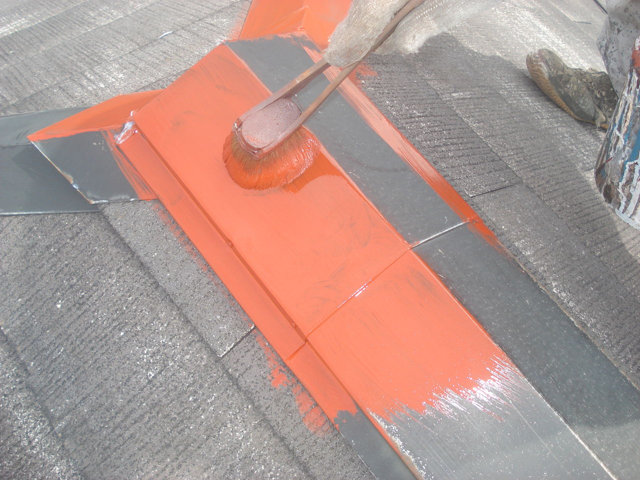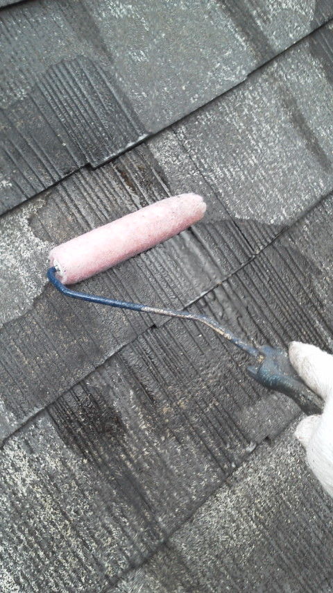 外壁には弾性のある下塗り剤、屋根は浸透させる下塗剤を塗りマス![]()