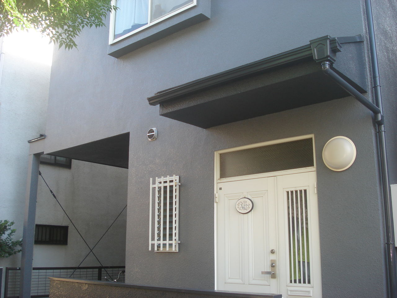 塀も同じ濃い色を使い、建物との統一感と出しました![]()