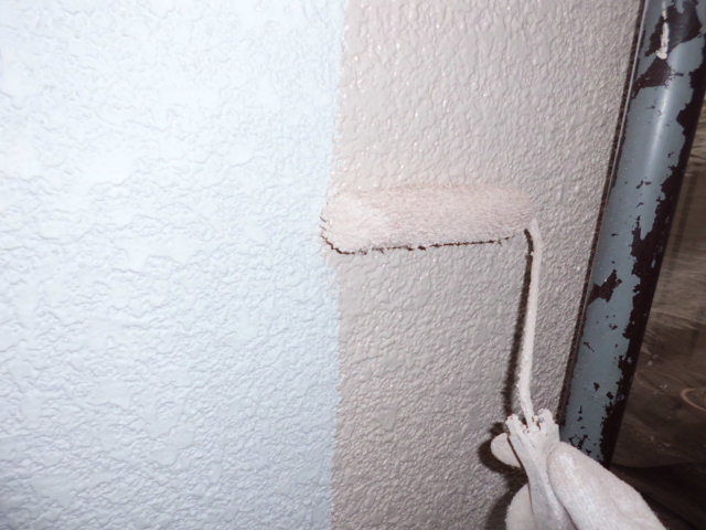 乾燥後に下塗り、既存の柄に合わせるために吹き付けデス
