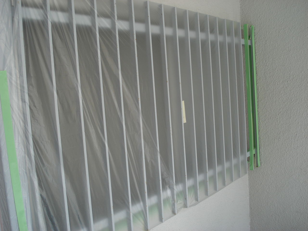 面格子と枠の痛みがひどかったので、一部修繕してから塗装しマス
