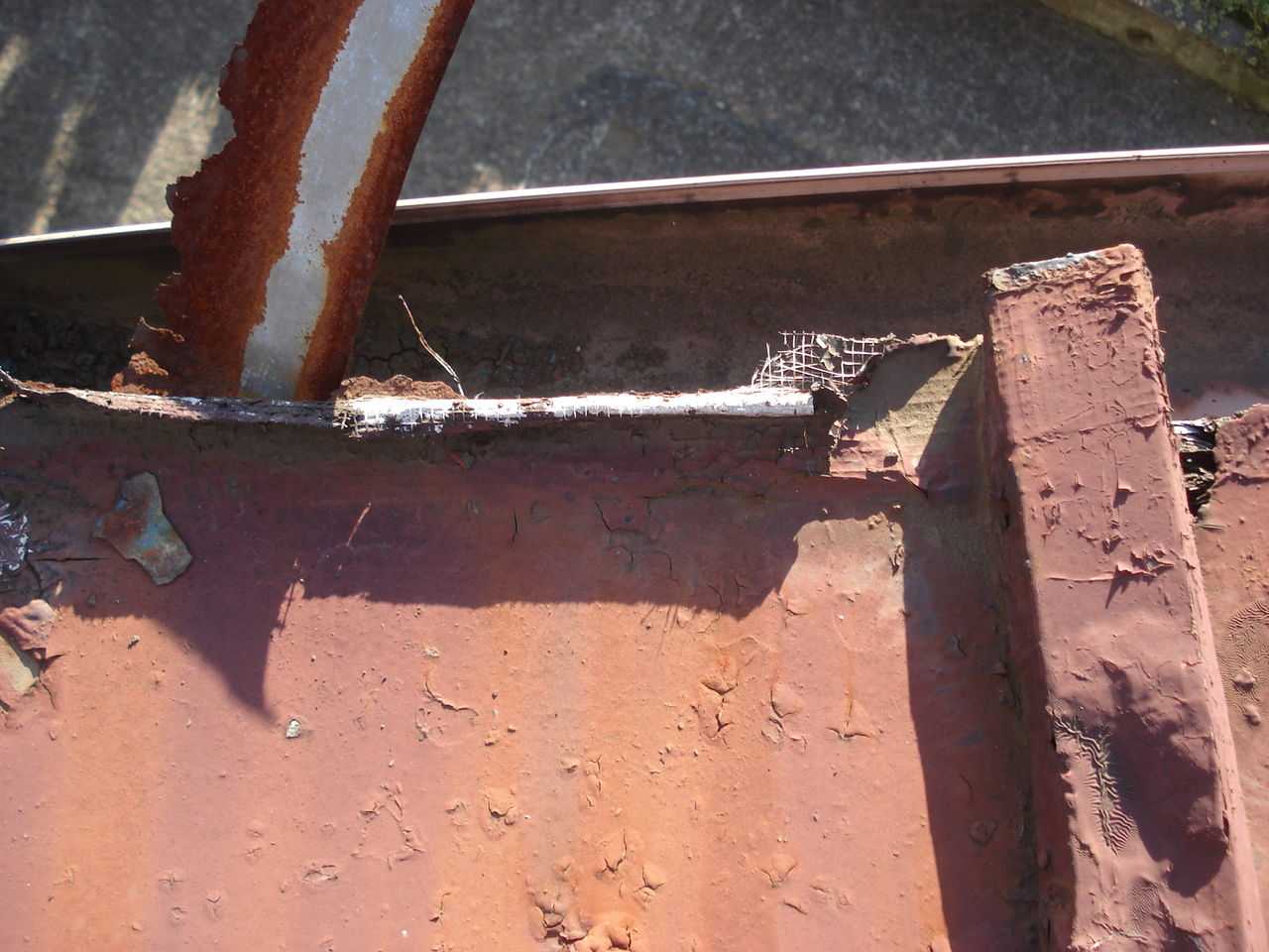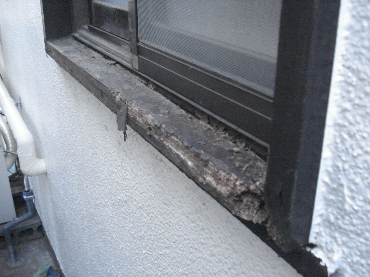 さらに、よーく見ると、以前から痛みがきていたのでしょうが、以前の塗装屋さんが傷んでいる場所をテープを貼ってその上から塗装していました