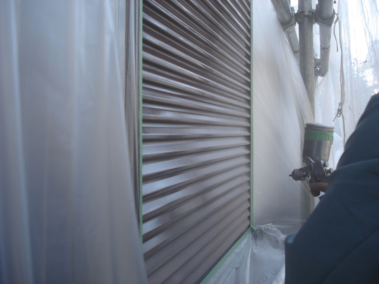 雨戸は刷毛跡が出ないよう吹き付けで仕上げマス
