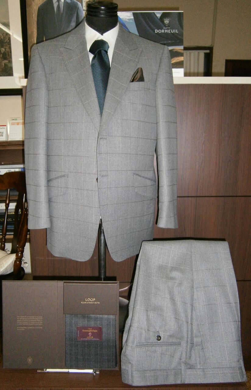 2020年09月27日 少しご紹介 ゼニアの”LOOP" で作ったスーツです。ライトグレーに茶系の格子柄。裏地ゼニアの茶系。ボタンゼニアの茶系。袖口本切羽、腰ポケットは少し強めのスラント、裏地とおそろいの胸ポケットのチーフ仕様などなど。。。 ゼニア”LOOP"は、¥168,000+税~ 紺無地ウール100%。裏地はグリーン、ボタンは黒系つや消しを 選択。写真のようになります。 スーツ¥58,000+税より出来上がります ゼニア”トラベラー” で作ったブラックスーツです。 写真では伝わりにくいですが、何とも言えない艶があります。 この他に”エレクタ、トロフェオ、ミルミル”などゼニアの中でも 黒地の種類はたくさんあります。