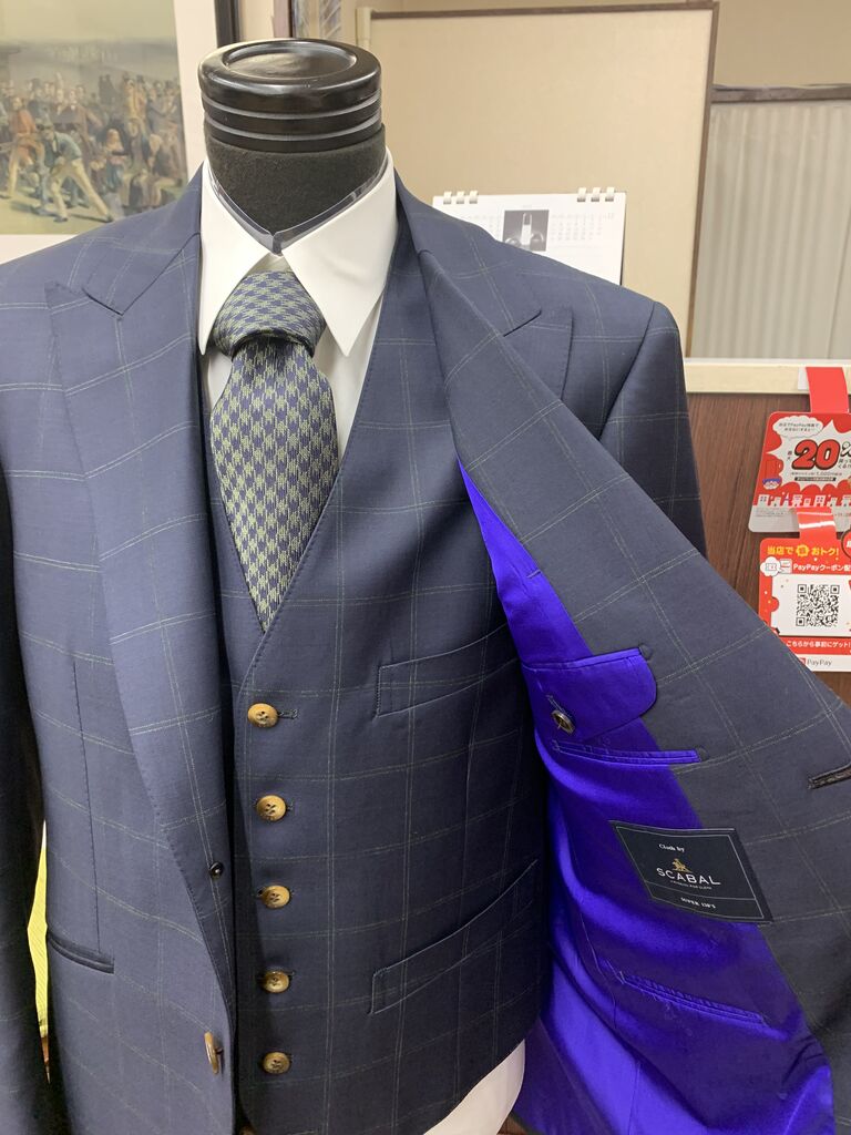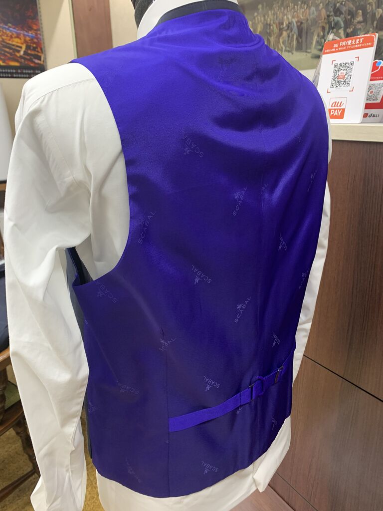 ジャケットを脱いだ時にベストの裏地がポイントに。。。