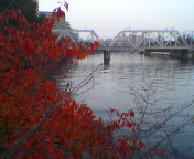写真はそんな帰り道、大川沿いの桜並木が紅葉してイイ感じだったので、