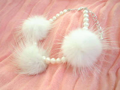 こちらでは、プチダイヤのネックレスかファー付きのパールブレスレットを
