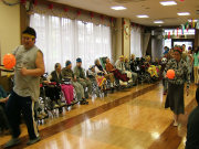 皆さんの応援を受けてご家族様と職員との二人三脚や、ボールをラケットに乗せたリレーも楽しく行われました。最後にはご家族様のトランペットの懐かしいメロデーを聞きながら笑顔いっぱいの運動会でした。