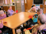 9月も終わりです。肌寒い日ですがフロアーのテーブルでみんなでピンポンを楽しみました。明るい笑顔でボールをまわしています。