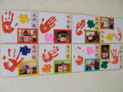 皆さんで作った手型と、職員と一緒の写真も笑顔いっぱいで色紙にレイアウトされ素敵な色紙ができあがりました。