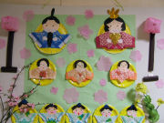 手作りの壁掛けもひな祭りを演出しています。これから皆さんで様々なお雛様を作って見せてくださるのが楽しみです。