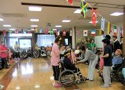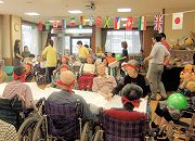 みゆき苑恒例の運動会です。シーツを張った上でのボール送りゲームです。外は強風で雨模様ですが館内は歓喜が響き元気いっぱいです。