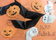 ![]() | 10月31日はハロウィンです。秋の収穫を祝い悪霊を追い払う行事は日本でも行われるようになりカボチャのお化けなどの折り紙で折って待っています。 |